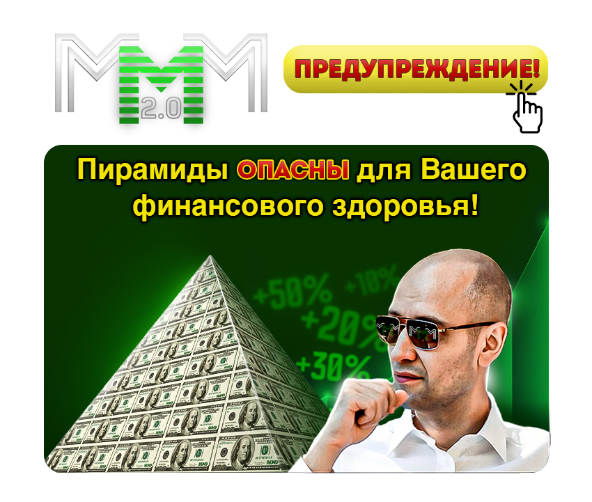 В МММ 2.0 нет никаких гарантий и обещаний ни в явной, ни в скрытой форме! Нет никаких договоров! Нет никакой организации! Нет никакого привлечения денежных средств и (или) иного имущества! Нет никаких вложений! Никакой предпринимательской деятельности! Никакой доходности! Никаких выгод и прибылей! Никакой инвестиционной деятельности! Нет государственной регистрации и, следовательно, никакого юридического лица тоже нет! Нет никаких операций с ценными бумагами, никаких отношений с профессиональными участниками рынка ценных бумаг, никаких ценных бумаг Вы не приобретаете! (А они Вам нужны?) Нет вообще ничего!! Я просто рекомендую людям добровольно и безвозмездно помогать друг другу своими свободными личными средствами.